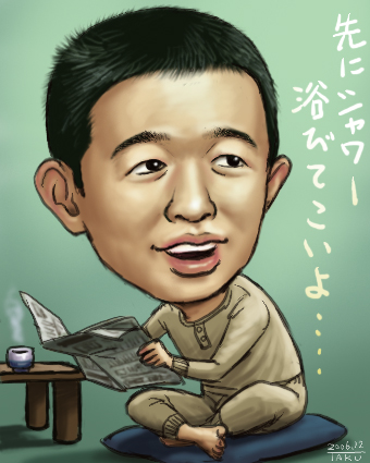 いろんな似顔絵描いてきたけど 完成するとよく家族にも見てもらう。 自分の目だけでなく他人の目から見た意見も聞きたいからだ。 でも、嫁の意見はあまり聞けない。 まず人の顔を覚えるというのが苦手らしい。(私もあまり得意ではないが) そしてあまりテレビを見ないから有名人をあまり知らない。 知っててもやはりはっきりとは覚えていないようだ。 ある日、嫁と二人で本屋に行った。 するといろんな歌手の方々の似顔絵が表紙になった本が置いてあった。 あの似顔絵漫画家、針すなお先生が描いた似顔絵だ。 さすが針すなお先生。 どの顔も見ただけで誰だかわかるものばかり。 すると嫁がその本を見て 「あ、この人あの人だ!」と言った。 誰だかわかる似顔絵があったらしい。 「ほら、あの人。・・・名倉潤!!」 ??・・・名倉潤??あのネプチューンの名倉潤? ええ?この本、なんか演歌歌手とか大御所と呼ばれる歌手とかが表紙になってるのに その中に名倉潤?? 「ほら」 と嫁が指差した先にあった似顔絵は どう見ても 氷川きよしです。 本当にありがとうございました。 さて今日の絵はえなりかずき君を描いてみました。 絶対に本人が言わないセリフというネタで有名なやつですね。 他の方が同じネタを描いていたのですが その方は、タバコを持って眉間にシワを寄せて 「先にシャワー浴びてこいよ」 と言ってる渋いえなり君を描いていました。 普段のイメージとギャップがあって面白いなぁ、と思いましたが 私は逆に普段のイメージのまま(どんなイメージだよ!!) このセリフを言わせてみました。 え〜と・・・ ごめんなさい。 PR