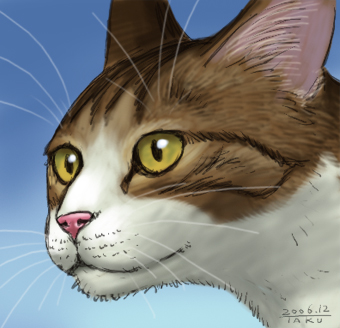 で、今日結局描いたのは猫のアップでした。