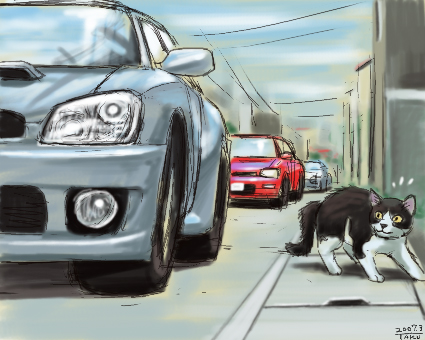 もにたが外に出たがったので 台所から廊下への戸を開けてやったら 開けていた勝手口からデカい白猫が廊下へ入って来ていました。 私を見てびっくりした白猫が外へ逃げていくと それを追いかけて弾丸のような勢いでもにたも出ていきました。 もうどこへ行ったのやら一瞬にして二匹は見えなくなりました。 しばらく捜していたら・・・ いた!! 道路の向こう側、お向かいの駐車場にいました。 もう既に白猫の姿はなく 尻尾のでかくなったもにたが 一匹だけ目を丸くしてそこにいました。 今までは外に出ても庭とかウチの裏の方とかにいって 道路の方にはあまり行かなかったのに。 道路の方に行っても車が恐いので渡る事は無かったのに。 多分白猫を物凄い勢いで追いかけて そのままの勢いで二匹とも道路を渡ってしまったんだ。 もちろん安全なんか確認する事も無く。 外に出る猫は危険がいっぱいだ。 今回のように他の猫を追いかけて夢中になると 周りの事なんか見えなくなってしまう。 もにた、車は危ないんだよ〜。 道路に出ると危ないんだよ〜。 その点ぼこやいは賢いなぁ。 もう10年程ウチにいてよく外にも出るけど 道路の方に行ったり渡ったり危なそうな所に行ったのを見た事がない。 ただ、濡れた屋根から滑って落ちたり ベランダでゴロゴロ転がって誤って落ちたりした事はあるけど。 PR