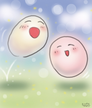 軽く嬉しそうに跳ねるだんご描いてみました。