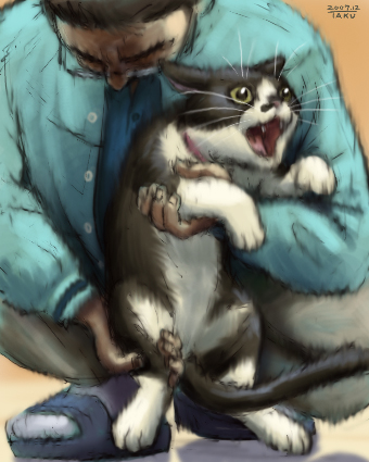 拾った時から下痢しっぱなしで医者にも診せたんですが 特にこれといった悪いものも見つかりませんでした。 その後いろいろ試してみて アイムスのドライフード食べさせるようにしてから下痢も落ち着き 波はありましたが最近はすっかりいいウンコしてたんです。 しかし昨夜、もにたがトイレ使ってるな、と思ったら ぶびょびょっと妙な音が。 ああ、下痢してる時の音だ。 下痢するのは困った事なんだけど 更に困った事が。 もにたはトイレの使い方がヘタなので よく踏むんですよ。 固い時なら被害は少ないんですが やわらかい時はエライ事になります。 昨日も見てたら、モロにではないけど 右後ろ脚の側面にクリーンヒット!! もうトイレが終ったのを見計らってすぐに 身柄確保!! 右脚をガッシリ掴んで風呂場に。 嫁にシャワーかけて洗ってもらったのですが、 もう戦いです。 普段は性格のいいもにたですが 自分にとって、とっても嫌な事をされると 全力で抵抗します。 鳴き方も「嫌だー嫌だー」って言ってたのが次第に 「なにすんじゃゴルルルァアアアアアア!!!はなせええええええ!!!」 そして暴れだして手を噛もうとしました。 もうこうなったら首根っこ強く掴んで対処しないとマジやばいです。 なんとか洗ったのですが 乾かす為のドライヤーも嫌いなんですね。シャワーほどじゃないけど。 しかしなんでまた急に下痢始まっちゃったかなぁ。 何か変なもの盗み食いとかしたかなぁ。 それとも雪降って外で遊べないストレスかな。 今日もちょっと踏んじゃって一騒動。 下痢治ってくれ〜。 PR