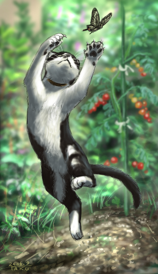 特に狩りに目覚めてから。 でも今の所素早そうな獲物はトンボ(1回)だけ。 あとはイナゴ(数知れず)アゲハ、キアゲハ(3〜4回) キアゲハの幼虫(3回)アゲハの幼虫(1回⋯しかも殺したけど喰わず) コオロギ幼虫(1回⋯これも殺したけど喰わず) 他にも知らないうちに狩った獲物もあると思います。 しかし捕りやすそうな獲物ばっかり。 アゲハ、キアゲハの幼虫なんて間違っても逃げられる事は無さそうだし。 まだ経験は浅いけど、鳥なんか捕まえる日が来るのだろうか⋯。 すごく無理そうな気がする。 ちなみに前の猫(ねこた)は2年間で3羽の小鳥を捕まえました。 でも小鳥を捕まえられるようになっても 全然捕まえられないままでも、もにたはもにた。 好きだ!! 昨日久しぶりに会った友人とカラオケに行って「宙船」唄いました。 イイ!! PR