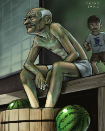 機会があればちゃんとしたサイトの方にも着手したいですね。 縁側+水の張ったタライ+スイカ、そしてじじい。今や珍しくなった日本の風物詩ですね。夏は良いものだー。