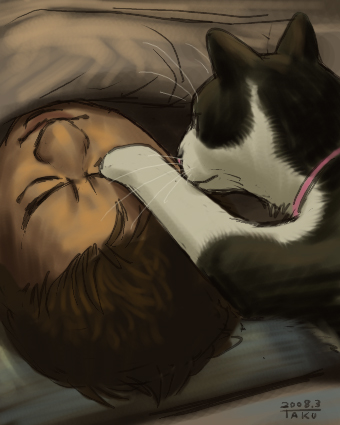もにたは朝、私を起こす。