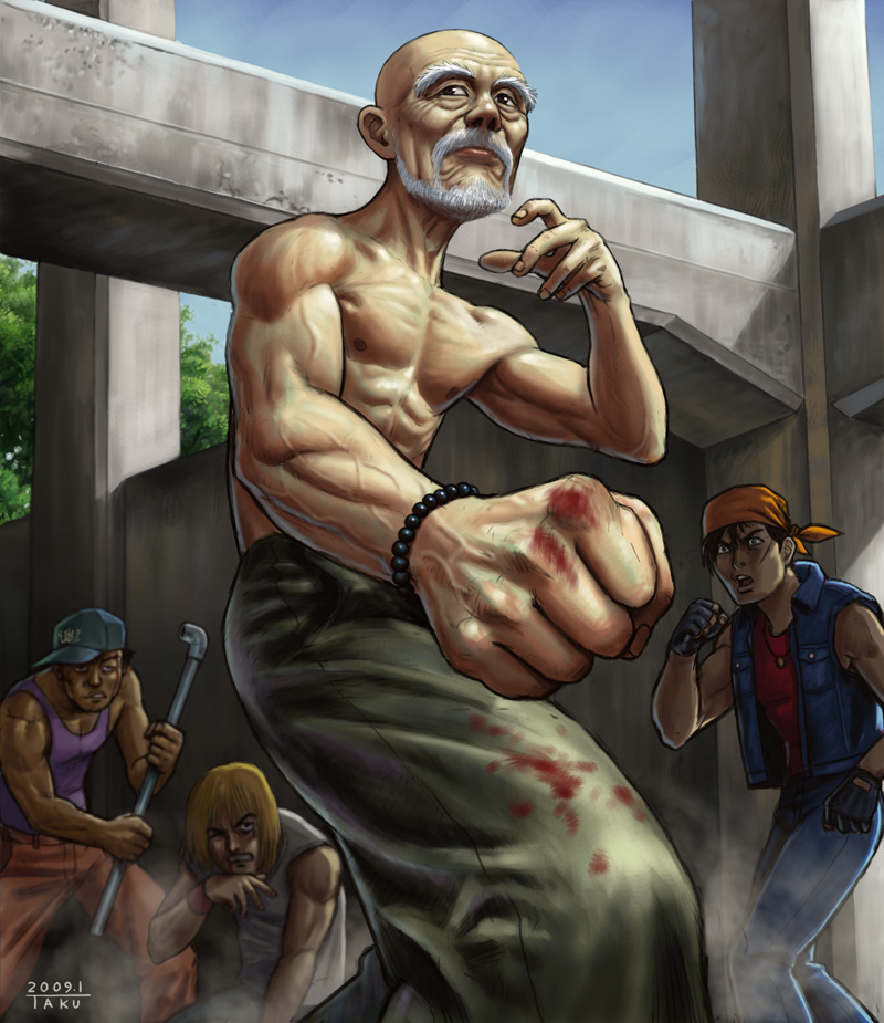 描き始めたのは1ヶ月位前なんですが なかなか描く機会が無くて 昨日やっと完成となりました。 とりあえずカッコイイじじいが描きたかったんです。 最初は背景も何も無く、じじいだけ描こうかと思ったんですが せっかくカッコイイじじいを描くなら 背景(空間)や脇役を取り入れる事によって 完成度を上げた方が達成感もあるだろうという事でちょっと頑張りました。 もっとじっくり時間を掛けてやれば また違った演出とか細かい描き込みとかも出来たかもしれなかったんですが 上を見ればキリが無いのでそこそこ良かろうというところで完成としました。 根性無いですし。 じじいと肉のコラボは楽しいなぁ。 PR