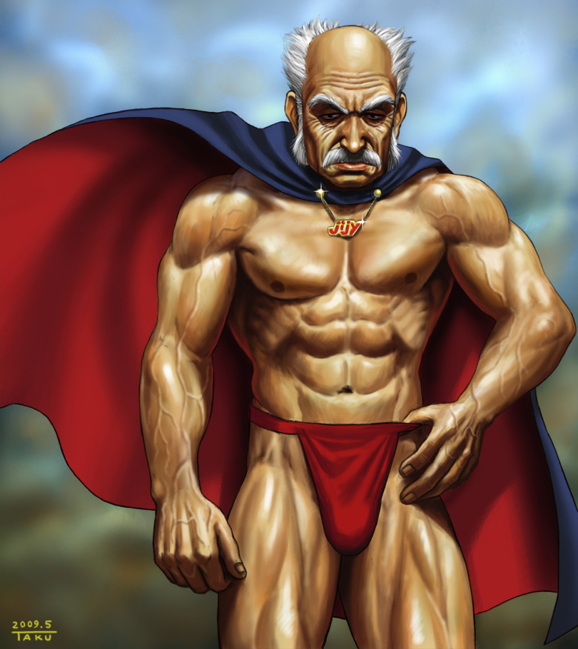 顔を若くするより 爺さんにする事によって なんか威厳が出るんですかね。 しかしこのじじい絵、 体の方はお年寄りという事を全然意識してないので 顔に対して異様に若々しいです(笑)