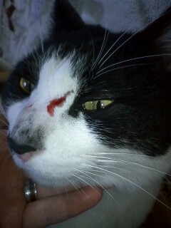 戦ってました。 お昼過ぎに庭のほうから 「ふぎゃぎゃぎゃーーーー!!」 と猫の格闘してるような声がしたんです。 急いで庭に出てみると もにたよりも一回り大きい白い猫と もにたが白い毛を撒き散らしながら 格闘していました。 「このやろー」と思い 二匹の猫の所に走っていきました。 すると大きい猫は逃げていったのですが もにたはその猫を追いかけて 見えない所まで行って更に 「ふぎゃぎゃーーー!!」 相当激しく戦ってたようです。 そしてしばらくして帰って来たもにたは 傷を負っていました。 痛々しい…。 一応化膿しない様に病院に行って 飲み薬をもらってきました。 もにたはこうやって結構日々戦ってるんだね。 負けるなもにた。 というか あまり怪我をしないようにな。 PR