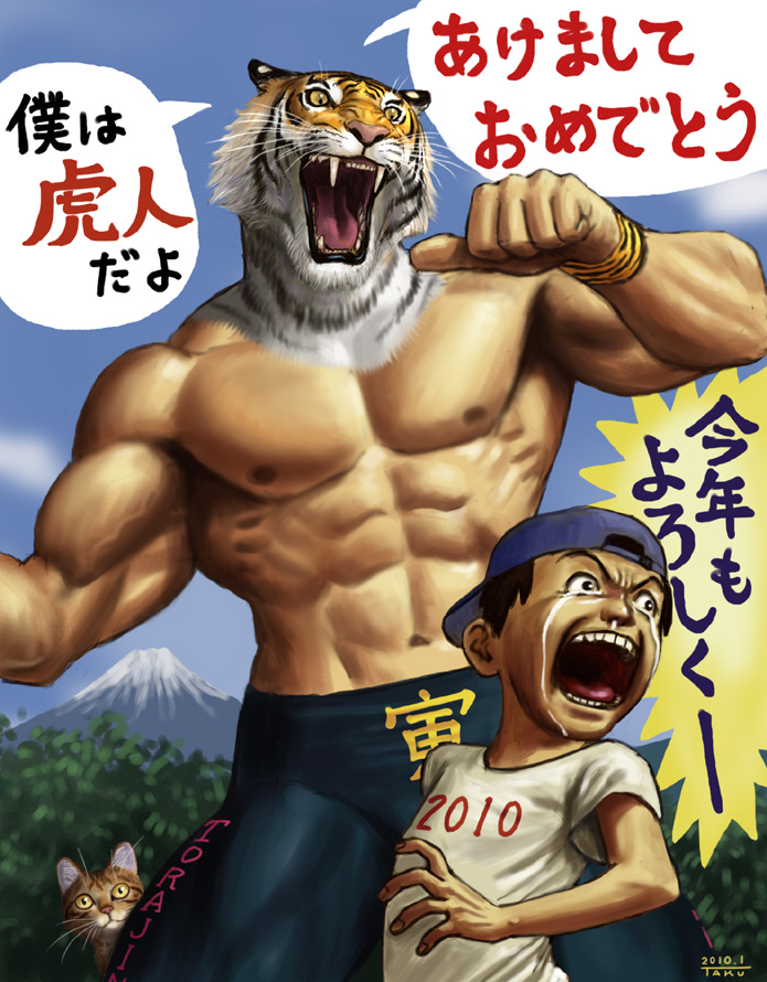 明けましておめでとうございます。 虎人は、本当に顔だけ虎にしてあとは鳥人のままでもいいかな とも思ったんですが、それじゃあまりにも手抜きかなと思いまして いっそのこと体も全部描き直しました。 このままのペースで雪が続くと 春には筋肉ムキムキになってるか くたばってるか…という感じです。 本当に雪は大変ですね。