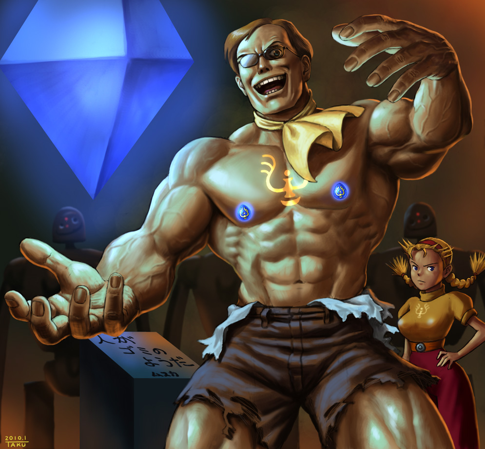 色んなネタが浮かんで 途中まで描いてるものや ラフだけ描いてるものがいくつか溜まってます。 その中から、方向性が決まったものや 描きやすいものなどから少しずつ描いていって 気が付いたらちょっといいペースで絵が仕上がって その都度投稿してたので最近ペースが速いんですね。 でも極端に仕事が忙しくなると ぱったり投稿しなくなったりもします。 んで 先ほどpixivに投稿したのがこの絵。 スーパーラピュタ人。 飛行石を手に入れたムスカはスーパーラピュタびとになった。 体に装着した飛行石により空も飛べるぞ!! スーパーラピュタびとになったムスカの髪の毛に変化が無いのは 地毛ではないからだと思われる。 う~ん、我ながらなかなかのくだらなさだ。 PR