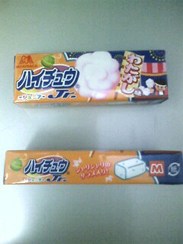 どうもついつい更新が疎かになってしまいます。 さて、最近気に入ってるもの。 ハイチュウ。 色んな味があって一粒食べたら次々喰ってしまいます。 そんな中で特にお気に入りなのが わたがし味!! ハイチュウJr.(ジュニア)といってちょっと小さいタイプのです。 とにかく「あー!わたがしっ!!」って味。 酸味が無くひたすら甘い。 あとシャリシャリのザラメの粒々が入ってます。 口の中で無くなりそうになると 「ああああ、もっと喰いたい」 とついつい口に入れてしまう。 あまりあちこちで売ってなくて 特定のところでないと手に入らないのですが 季節的にそろそろ姿を消してしまうのでしょうか。 ずっと残ってほしいな。 さてさて ウチでは毎年庭にトマトを植えています。 ちっちゃいプチトマトですが。 今年はちょっと違うタイプで 実が細長くなる「アイコ」という品種を植えてみました。 なんかトマト栽培に使える トンネル状の骨組みにビニールを被せる 雨よけなるものが売っていたので 梅雨前からトマトに使っていました。 しかしトマトは雨除けの中でどんどん大きくなり 天井を突き破る勢いだったので(突き破りゃしないでしょうけど) 紐で横方向に誘導してやり、 はみ出しそうになってはまた中に誘導してやり …とやってたら 奇妙なツル植物のようになってしまいました。 でも順調に次々と実をつけました。 しかも今まで栽培していたプチトマトより 食べ応えもあり美味いのです。 あぁ来年もこのトマトにしようかな。 PR