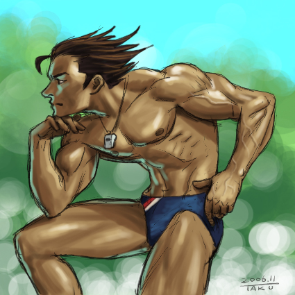 たまねぎいつもよりもっと細かくみじん切り。 ニンニクもみじん切り。ベーコンもみじん切り。 それとサクラエビを炒めていい色にして、 スープに入れるうぅぅぅっ。 そしてふと思ったのが たまねぎのみじん切り、炒めたものの他に シャキシャキ感と辛さが少し残った生に近いものも入れれば いいアクセントになるかな・・・と思ってすぐ実行。 その他にワカメともちろんキクラゲも入れて完成。 麺は硬めに茹でたはずなんですが軟らかくなってました。 一緒に煮た物の中にそういうふうに作用する物があったのでしょうか? まぁとりあえずうまかったです。 特に麺が無くなってからのいろんな具が入ったスープがうまいうまい。 生っぽいたまねぎもいい感じでした。 そこで今日は何にも関係ないけど肉の絵だー!! 成りゆきでなんとなくプールの監視員みたいなのにしちゃいました。 さぁいよいよ雪が降りました。 雪がちらつく中タイヤ交換も完了。 寒いよ。ホントに寒いよ。 だってまだストーブ点けてないんだもんっ!!! PR