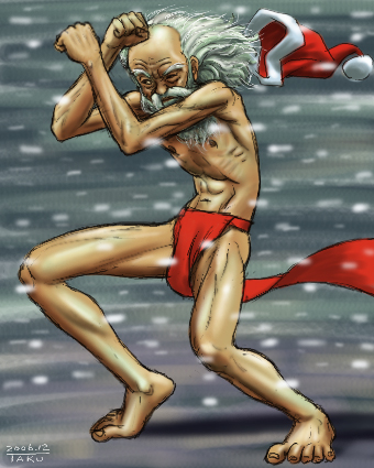 焼き干しのあっさりタイプのラーメン。 でもこってりが喰いたいと思ったので色々やりましたよ。 脂たっぷりの焼豚もあったので、 スライスしてラーメンにのせる以外に 焼豚みじん切り!! ニンニク、タマネギ、みじん切り焼豚を ラードで炒めてスープ用のお湯へ。 そのお湯に更に黒砂糖、味噌、シーフードも入れて煮ました。 このお湯でスープを作って麺は硬めに茹でて 最後にワカメとネギとスライスした焼豚のせて完成!! 濃くてうまかったです。 次の日あまり手を加えないで同じラーメン食べましたが 色々やって濃くした方がうまかったです。 さて、今日はクリスマスなのでサンタ絵を。 自分でもどんな場面なのかよくわからないのですが おそらく露天風呂に入ろうと思ったら突風が吹いたのでしょう。 下着がどうとかは気にしない気にしない。 PR