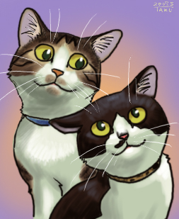 以前の動画を見てたんですよ。 そしたらデジカメで一番最初に撮った動画があったので見てみたら 生前のねこたが映った動画でした。 飼い始めて半年(生後8ヶ月程)のねこたが 外から帰ってきてにゃぁにゃぁ鳴きながら寄ってくるのです。 「ああ、ねこたはこんな声で鳴いてたんだな。 外から帰ると必ずにゃぁ(ただいま〜)って挨拶してたな。」 短い動画だけども、何度も見てたら 懐かしく、切なくなりました。 ねこたが死んで、たった5日で、もにたを拾った。 たった5日のすれ違い。 今ねこたがいたら、もにたももっと楽しく過ごす事ができてたかな。 あまり寂しい思いをせずに済んだかな。 ・・・などと思いながら またこんな絵を描いてしまいました。 しょっちゅうこんな事考えてるなぁ。 PR